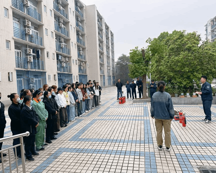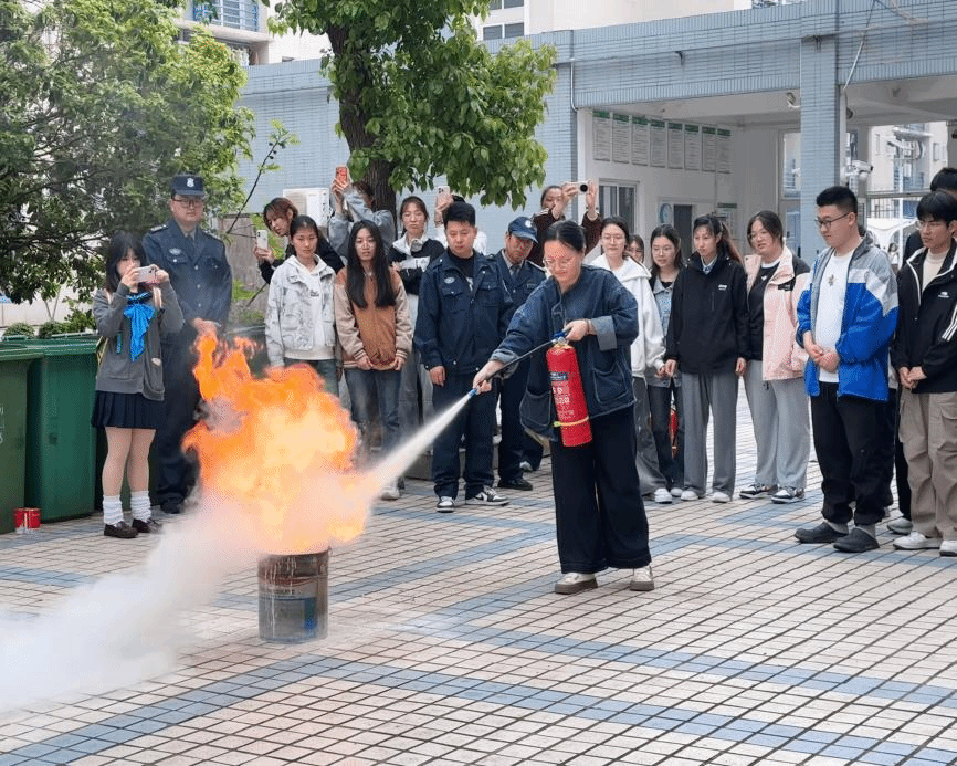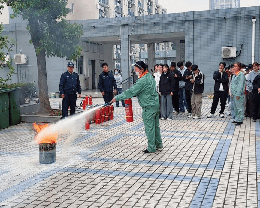 随后,保卫处开展学生公寓消防安全专题培训,工作人员结合火灾防控重点,讲解火场逃生技巧、宿舍安全用电规范,详细演示灭火器操作流程。随后,现场开展实操演练,在专业人员指导下,学生与物业工作人员分批上阵,亲手操作灭火器扑灭明火,切实掌握应急灭火技能。